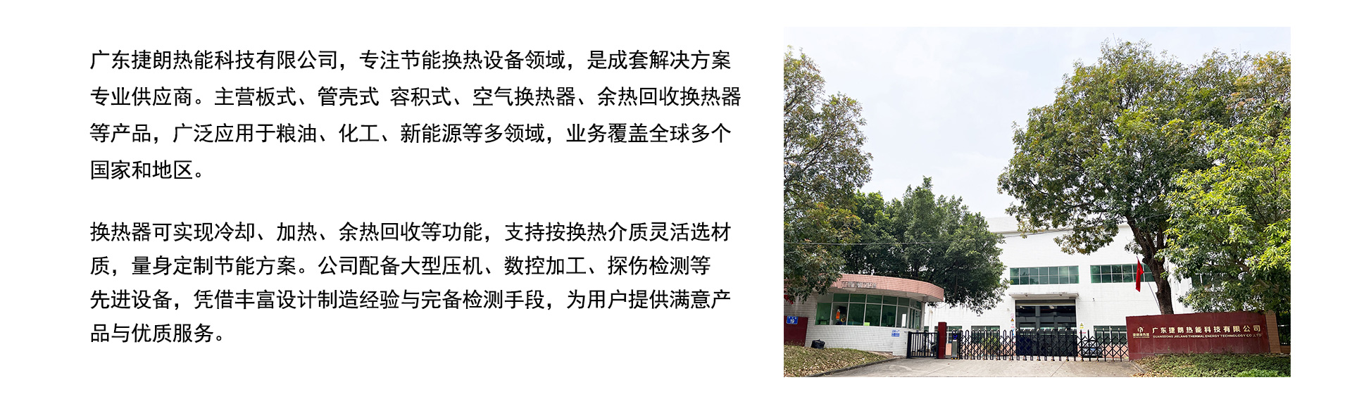 捷朗聚焦板式、管式换热器研发制造,以高效节能、场景适配的核心优势,为工业、新能源、暖通等领域提供绿色换热解决方案。