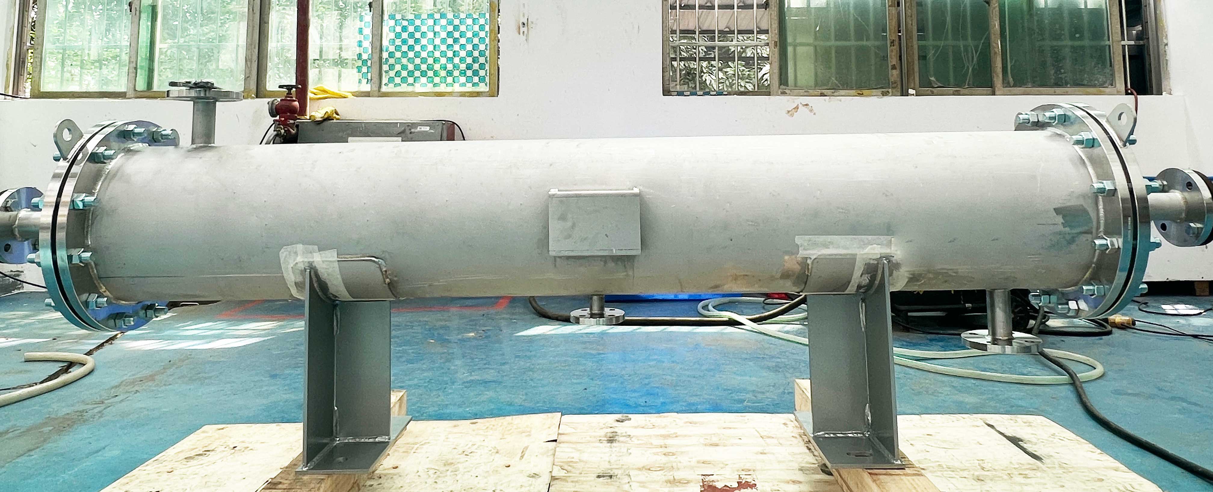 4、涡流热膜换热器:涡流热膜换热器采用最新的涡流热膜传热技术,通过改变流体运动状态来增加传热效果,当介质经过涡流管表面时,强力冲刷管子表面,从而提高换热效率。最高可达10000W/m2℃。同时这种结构实现了耐腐蚀、耐高温、耐高压、防结垢功能。其它类型的换热器的流体通道为固定方向流形式,在换热管表面形成绕流,对流换热系数降低。