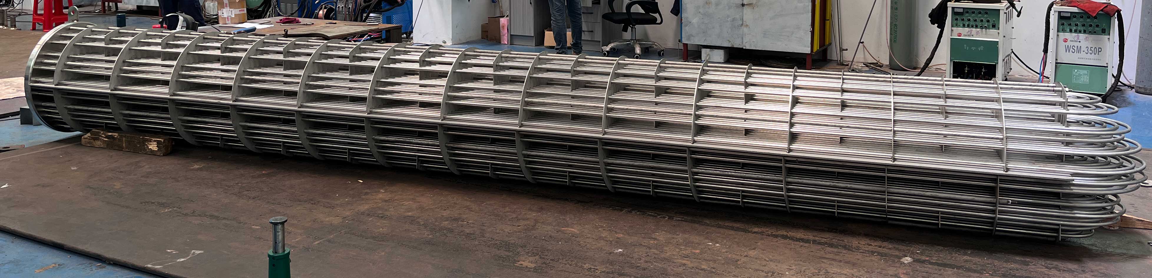 3、U型管式换热器 :每根换热管皆弯成U形,两端分别固定在同一管板上下两区,借助于管箱内的隔板分成进出口两室。此种换热器完全消除了热应力,结构比浮头式简单,但管程不易清洗。