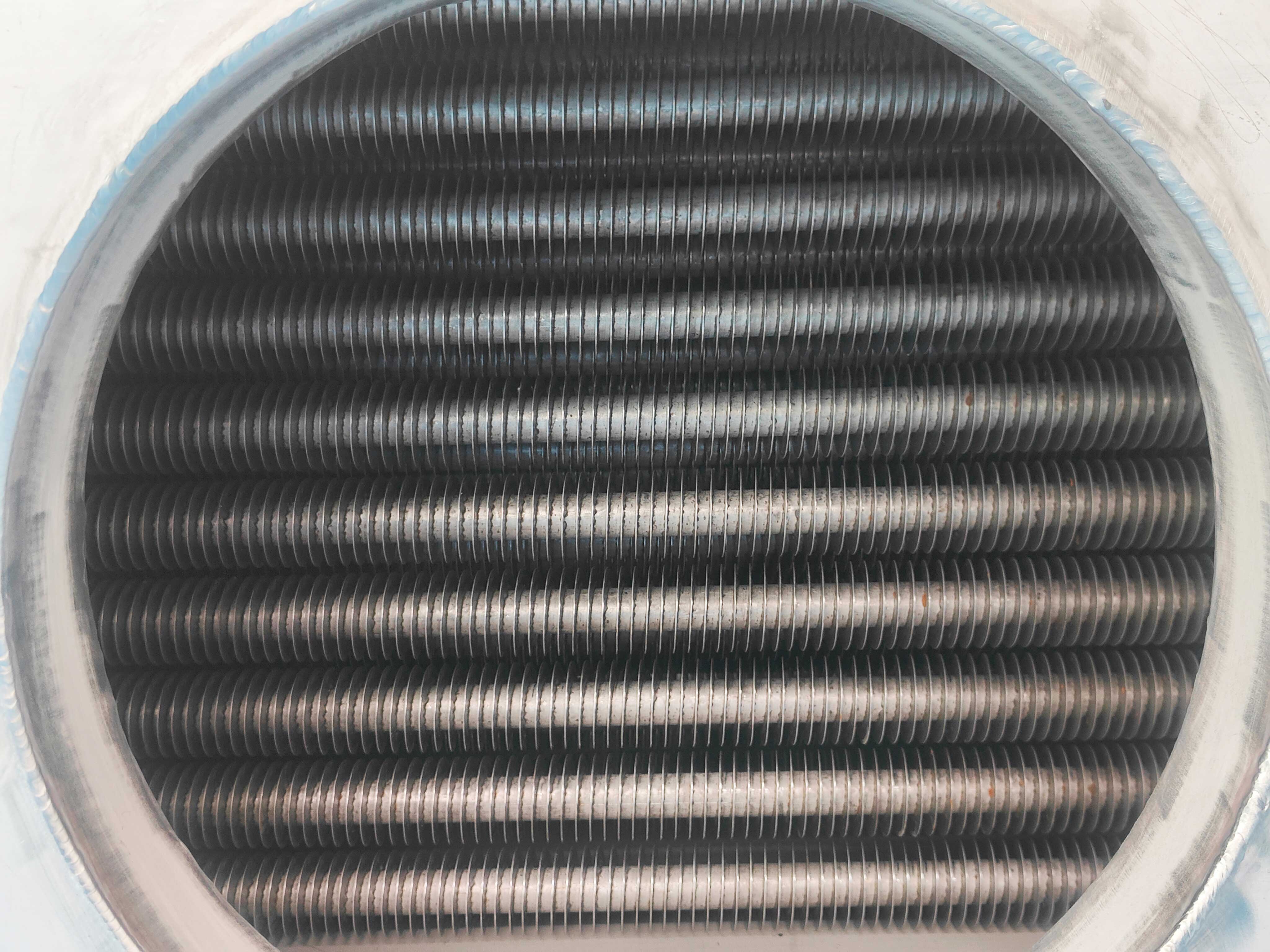 轧片式换热器:采用轧制工艺将金属基管表面挤压出连续翅片,翅片与基管为同材质一体成型。其机械强度高,无焊接点,耐压能力达 2.5MPa,抗振动性能优异,且重量较轻,适用于乳品生产线杀菌、制药纯化水冷却等洁净场景,以及热泵机组、余热回收系统等频繁启停工况。